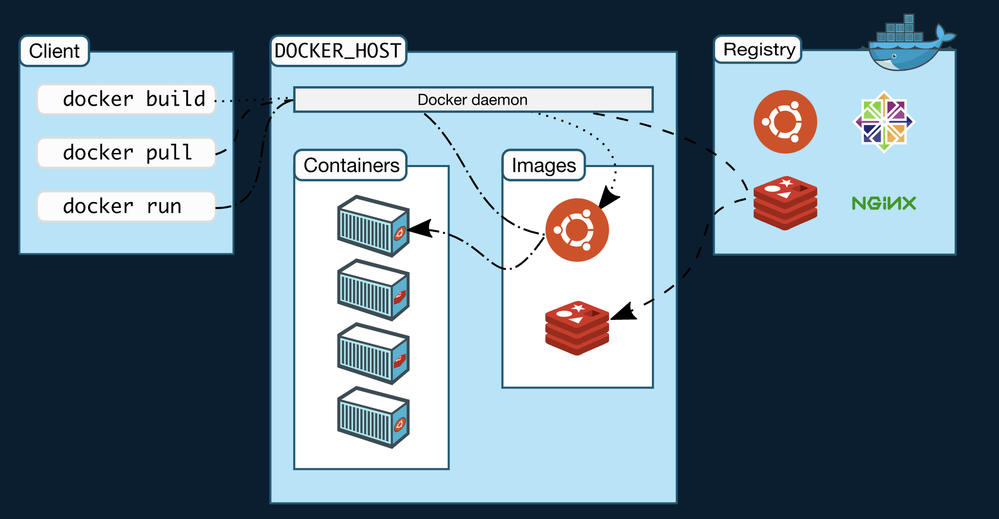 Docker Client는 컨테이너를 빌드, 실행 및 배포 같이 무거운 작업을 수행하는 Docker 데몬과 통신합니다.