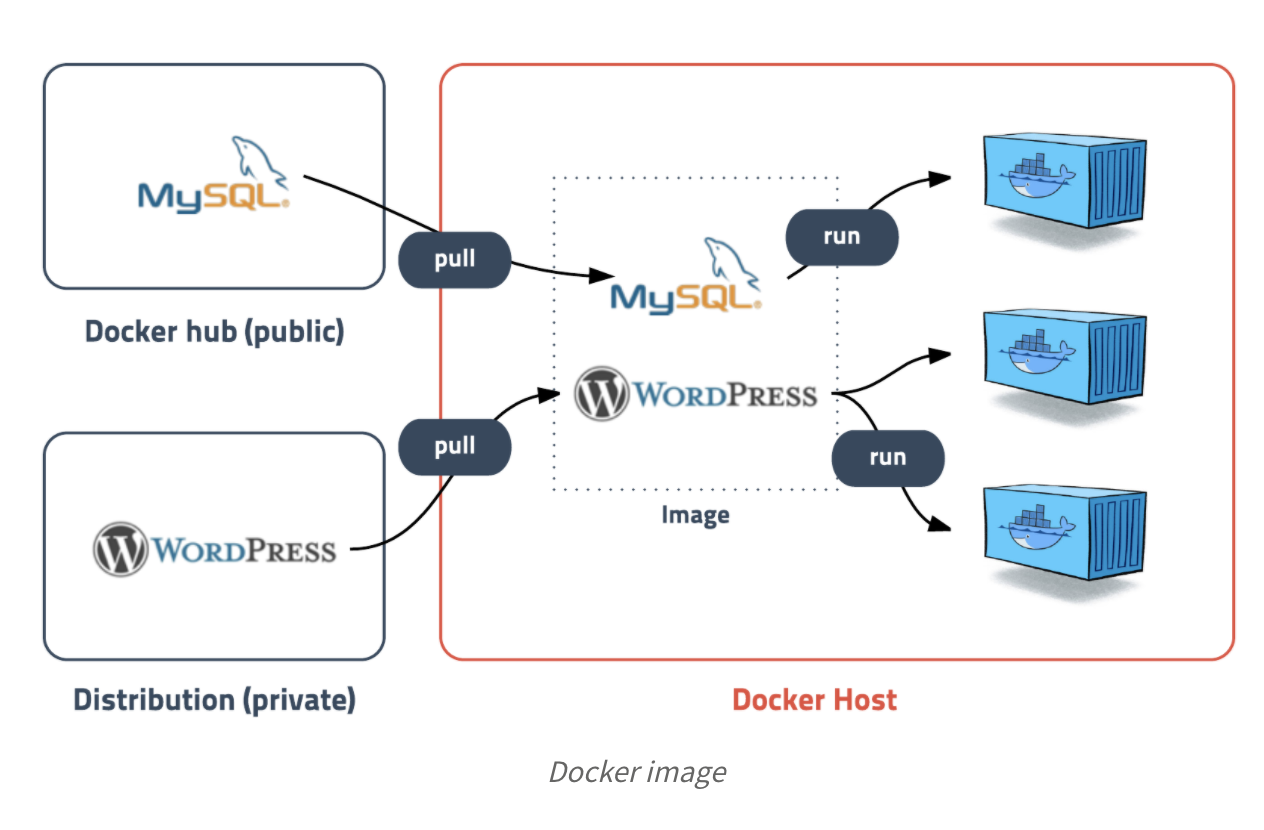 'docker pull'이나 'docker run' 명령으로 레지스트리에서 필요한 이미지를 가져옵니다.
