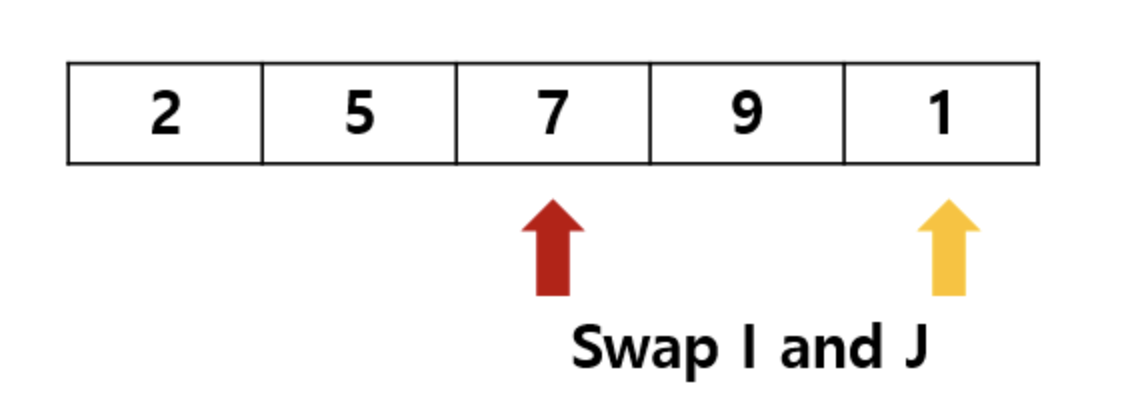 j를 찾았으면 N[i]와 N[j]를 swap합니다.