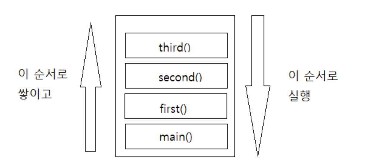 java로 작성한 프로그램이 메모리에 올라와서 실행되면 main() 메서드부터 실행되고 코드 위에서부터 순차적으로 호출된 메서드들이 호출 스택에 차곡차곡 쌓입니다.