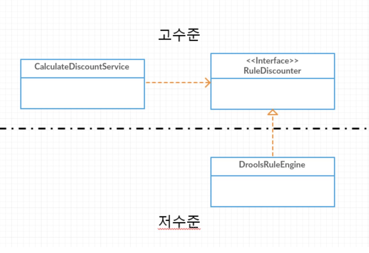 RuleDiscounter라는 인터페이스를 두고 저수준 모듈에서 이를 구현하는 객체를 생성하는 방식으로 의존관계를 맺었습니다.