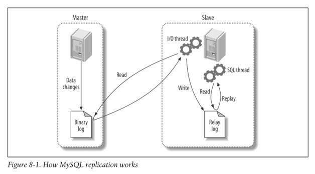 Slave 서버는 Master 서버의 바이너리 로그를 읽어서 변경 내역을 Relay log에 기록하고 재실행하여 Master 서버와 동기화한다.