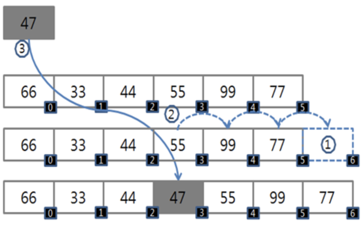 - index 3 부터 값들을 한 칸씩 이동