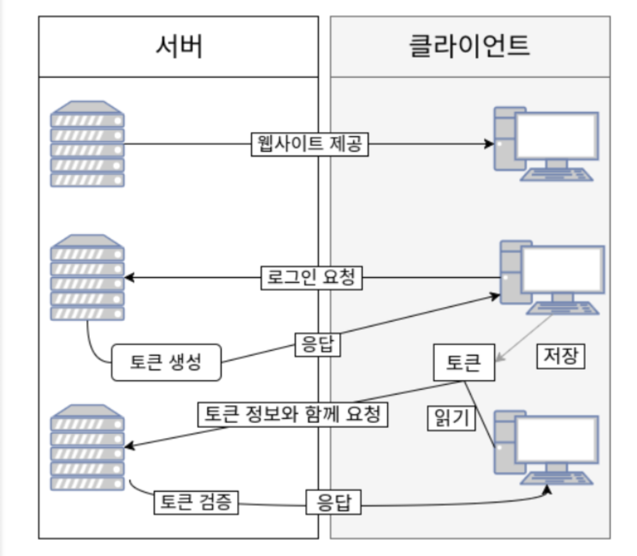 - 서버는 토큰이 유효한지 검증해보고 유효하다면 올바른 요청으로 인식하고 애플리케이션 프로세스를 진행한다.